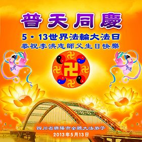 綿陽大法弟子同慶5.13世界法輪大法日!恭祝李洪志師父生日快樂!