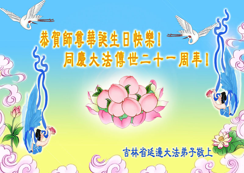 吉林省延邊全體大法弟子賀世界法輪大法日暨法輪大法洪傳世間二十一週年!
