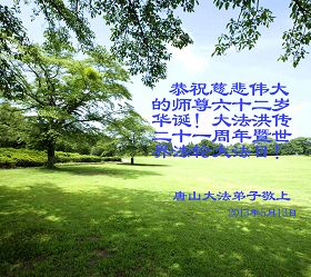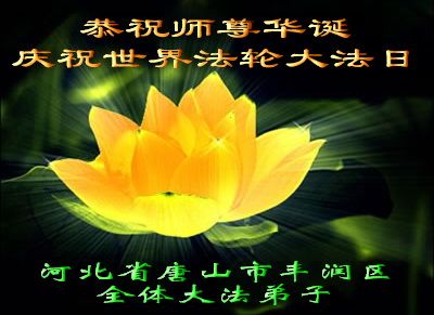 河北省唐山市唐海縣(現更名為:河北省曹妃甸區)全體大法弟子恭祝慈悲偉大的師尊華誕!普天同慶世界法輪大法日!