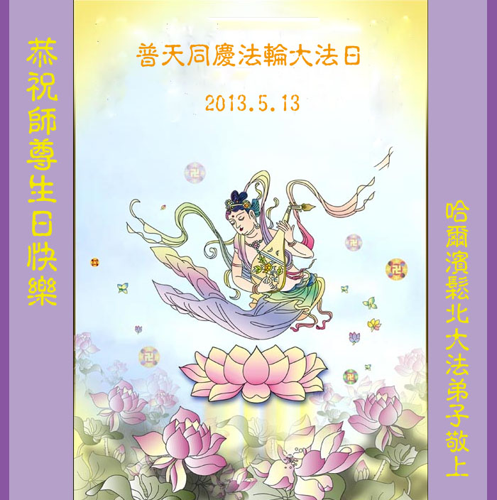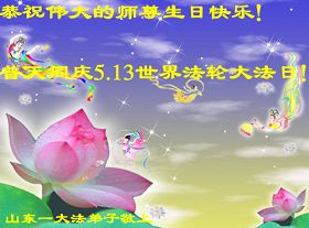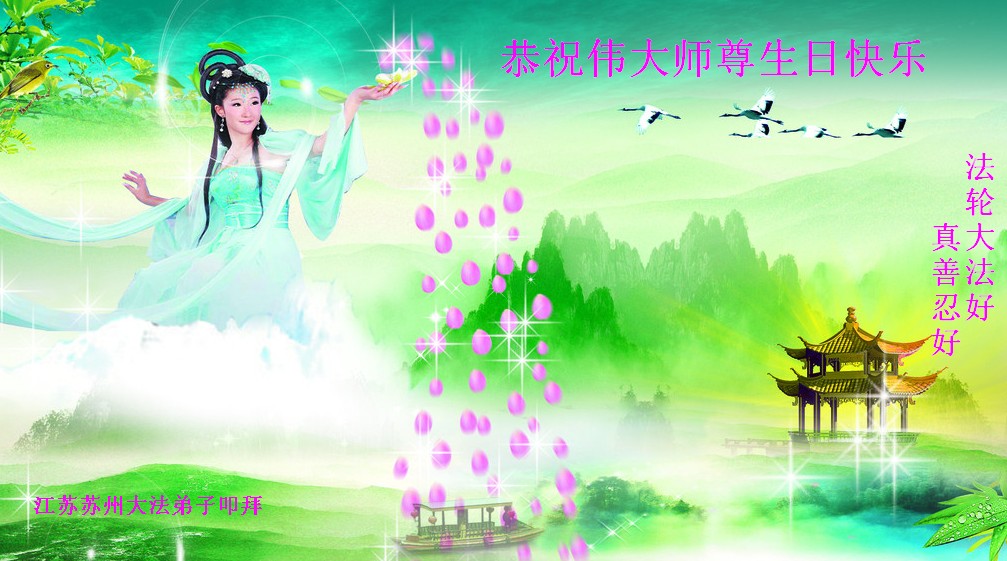 弟子恭祝慈悲偉大的師尊生日快樂!恭賀法輪大法洪傳二十一週年!恭賀第十四屆世界法輪大法日!