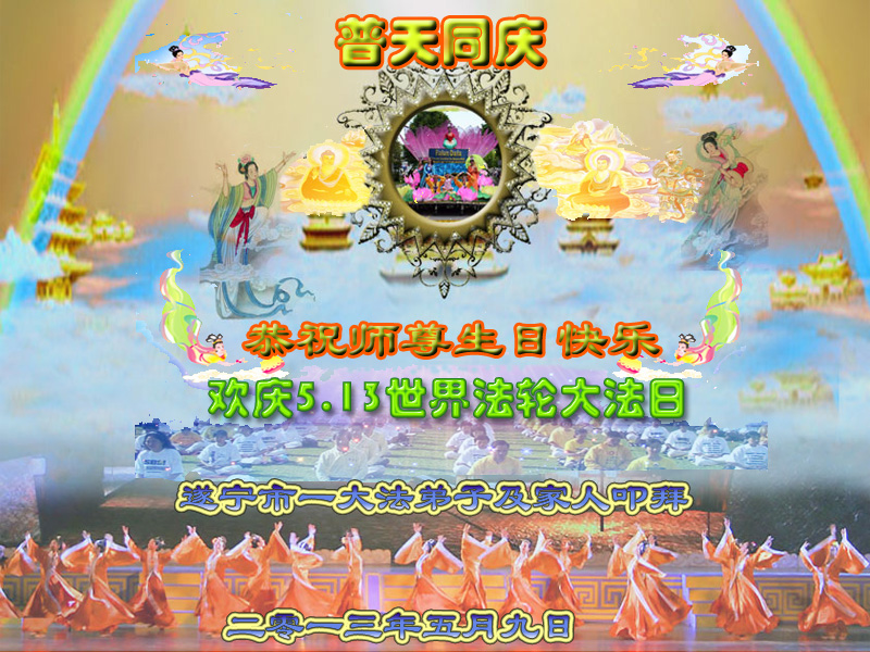 在[世界法輪大法日!]暨師尊華誕臨近之際,我們全體德陽地區(包括廣漢、什邡、綿竹、中江、羅江、旌陽區)大法弟子以無限敬仰之心恭祝師尊生日快樂!
