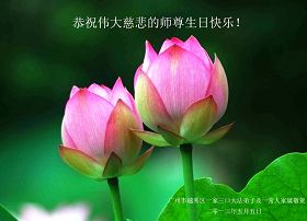 恭祝慈悲偉大的師尊生日快樂!祝賀法輪大法洪傳世界二十一週年!感謝師尊的佛恩浩蕩。