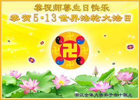 在歡慶大法洪傳世界二十一週年之際,我們浙江省杭州老年大法弟子恭祝慈悲偉大的師尊六十二華誕,祝師父生日快樂!
