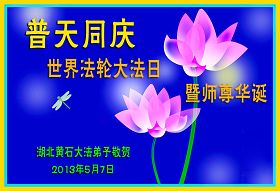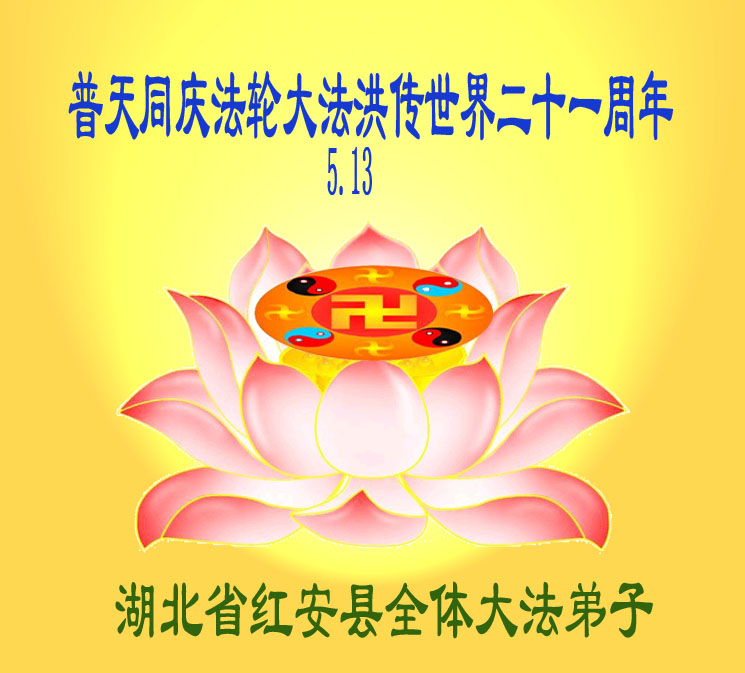 湖北安陸一大法弟子全家同賀世界法輪大法日暨大法洪傳二十一週年,同祝偉大師尊六十二華誕!