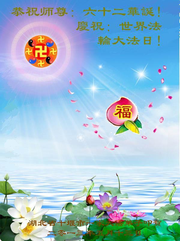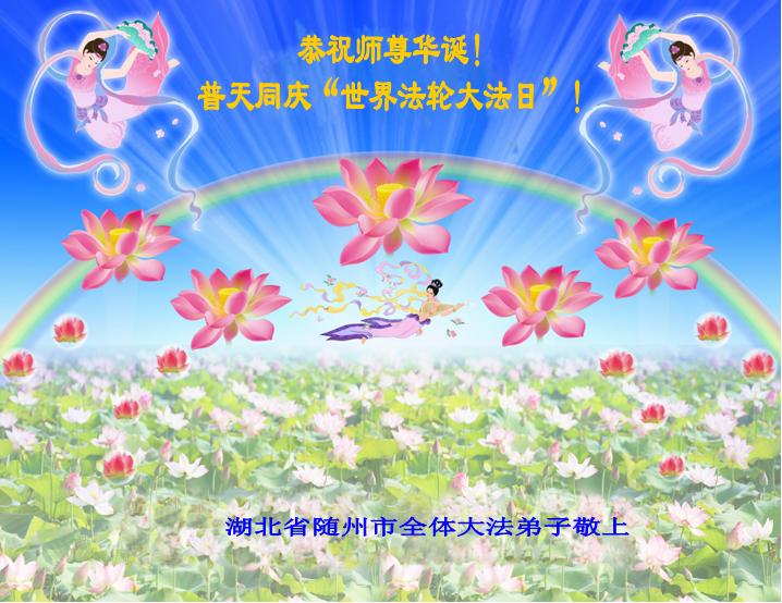 湖北省隨州市全體大法弟子恭祝慈悲偉大的師尊生日快樂!感謝師尊的慈悲苦度!我們一定走好最後的路,修好自己,做好三件事,形成整體,助師正法,圓滿隨師還。