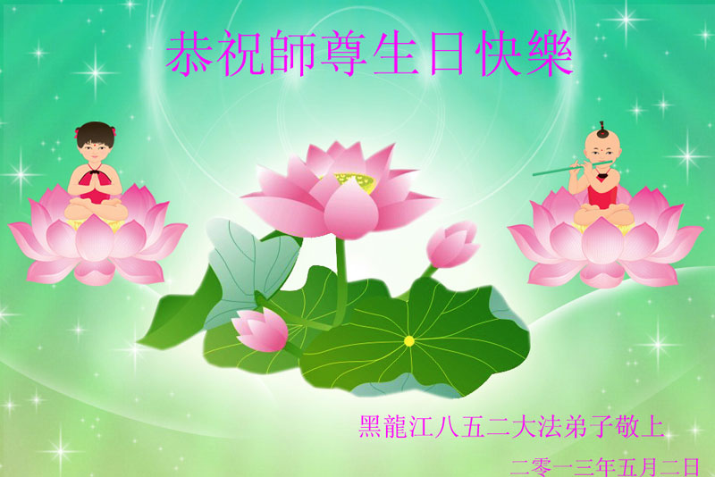 黑龍江八五二大法弟子恭祝師尊生日快樂!