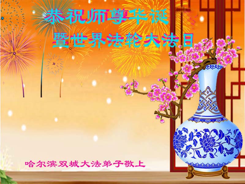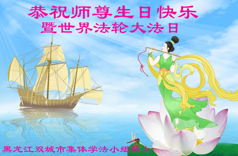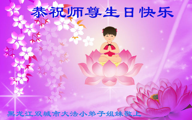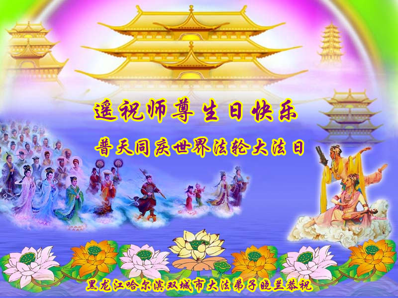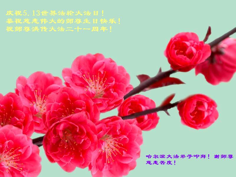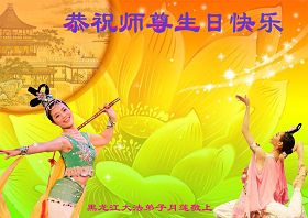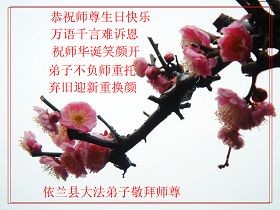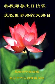 向師父問好!祝師父生日快樂!盼望師父早日回家鄉!恭賀第十四屆世界法輪大法日!