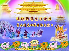 普天同慶五月十三,祝福師尊,祝師尊華誕快樂,感恩師尊慈悲苦度,弟子好想您呀!弟子牽著您的衣襟跌跌撞撞走過了十五個年頭,您將弟子從地獄裏撈起,洗淨,幸運的成為了正法時期大法弟子。千言萬語彙成一句話,謝謝恩師!您辛苦了!