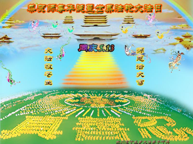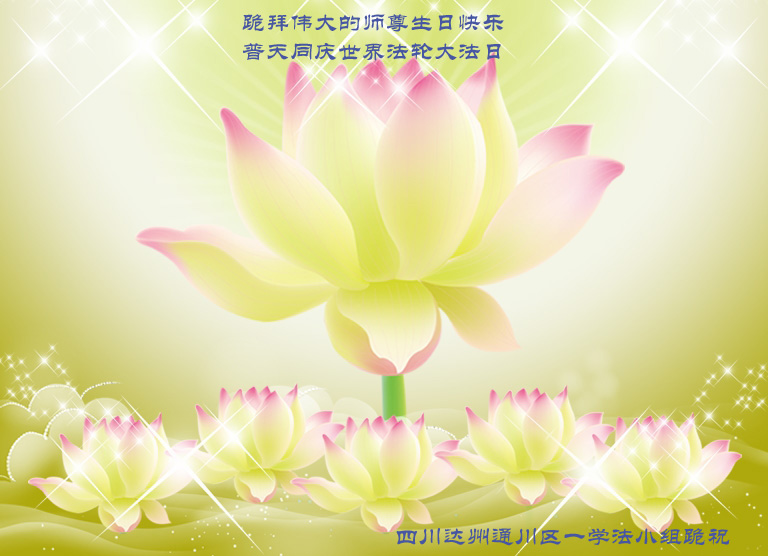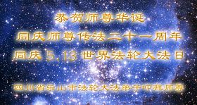達州市全體大法弟子恭祝師尊生日快樂暨法輪大法廿一週年紀念日!