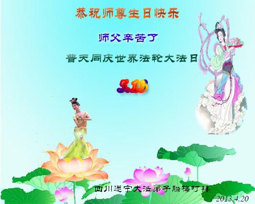 達縣全體大法弟子恭祝師尊生日快樂暨法輪大法廿一週年紀念日!