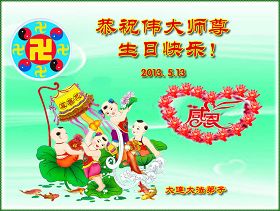 在這個大喜的日子裏,弟子無法用人間的語言表達對師父的敬仰和感恩,只有在心底道一聲師父辛苦了。回想自己得法十六年,每走一步,沒有師父的呵護寸步難行,師父為每一位弟子付出多少心血,承受多少苦難,不是用語言能表達的了的。所以在最後的路,弟子知道,只有按照師父的要求做,學好法,講真相,救眾生,守住心性,提高心性,才是師父最欣慰的。所以,弟子願放棄時間一切執著,以慈悲的心態,寬廣的胸懷和本地同修形成強大的整體,不再給邪惡可乘之機,救度更多的眾生,走好最後的路,迎接師尊的到來。