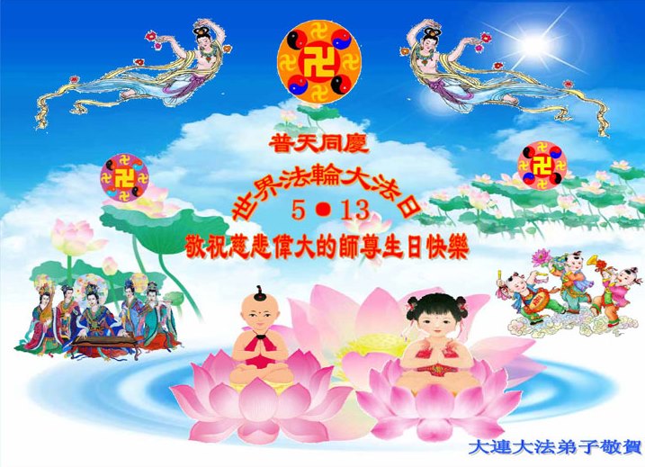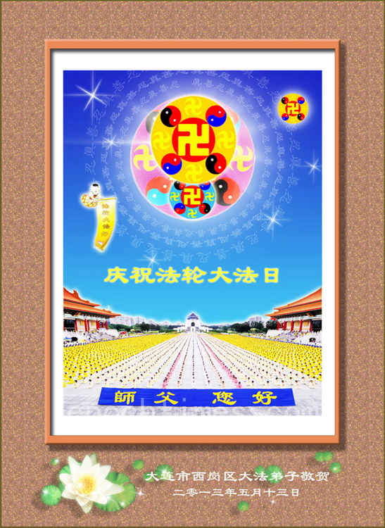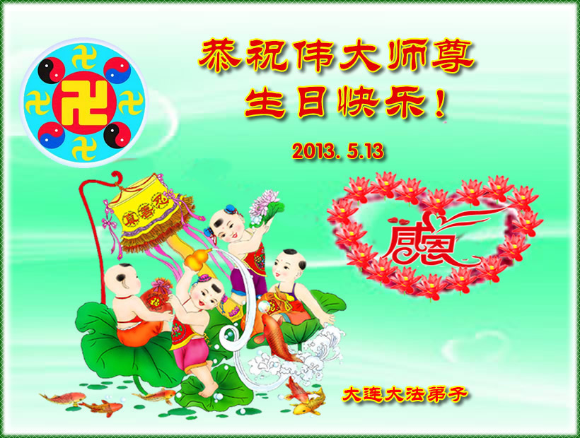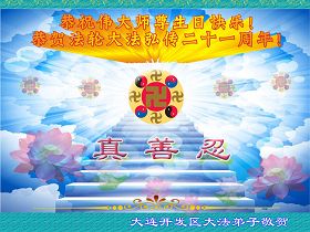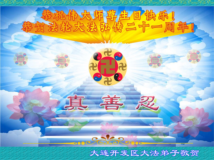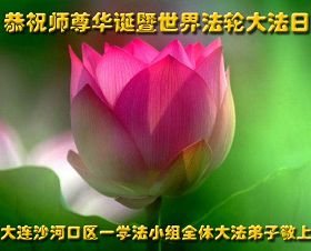 大連大法弟子恭祝慈悲偉大的師尊生日快樂!恭祝法輪大法洪傳世界二十一載!