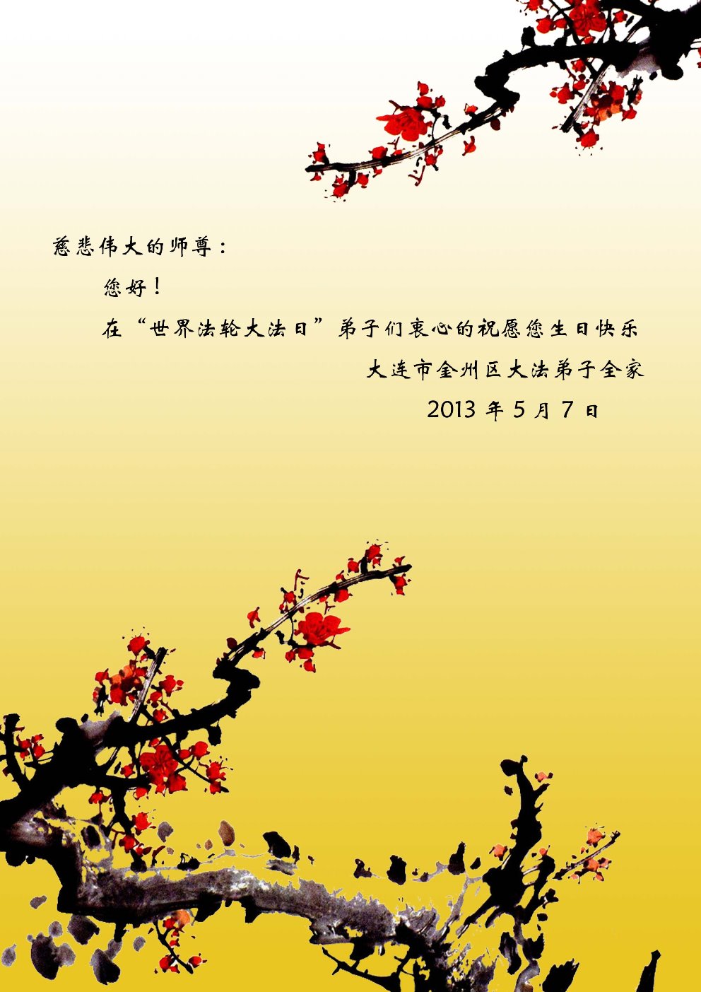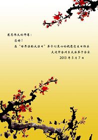 在師尊生日即將來臨之際,我代表大連市金州區大法弟子全家祝福師尊生日快樂,同時也設計了一款生日賀卡,以表達心意。