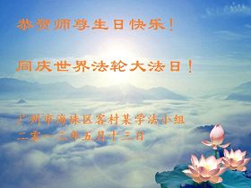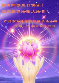 廣東省廣州市大法弟子恭祝5.13世界法輪大法日暨偉大師尊生日快樂!