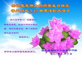 湖北省武漢大法弟子恭賀師尊生日快樂,敬祝師尊生日快樂!