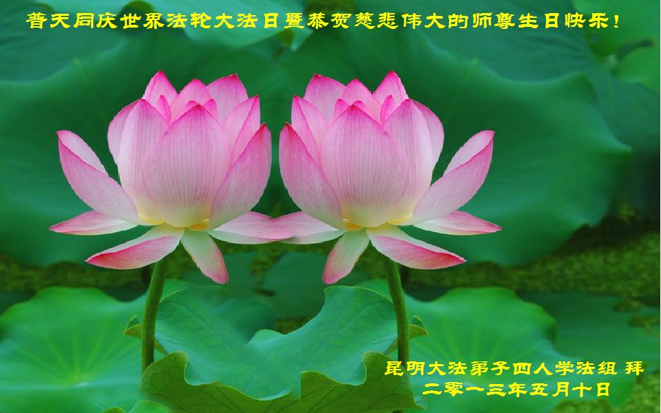 雲南昆明大法弟子恭祝師尊生日快樂暨世界法輪大法日!