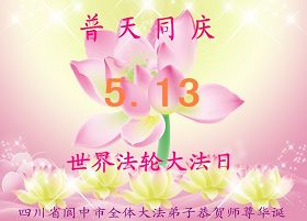 勝利油田教育界大法弟子恭賀5.13世界法輪大法日!