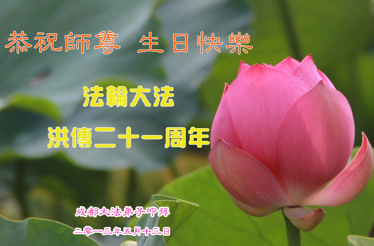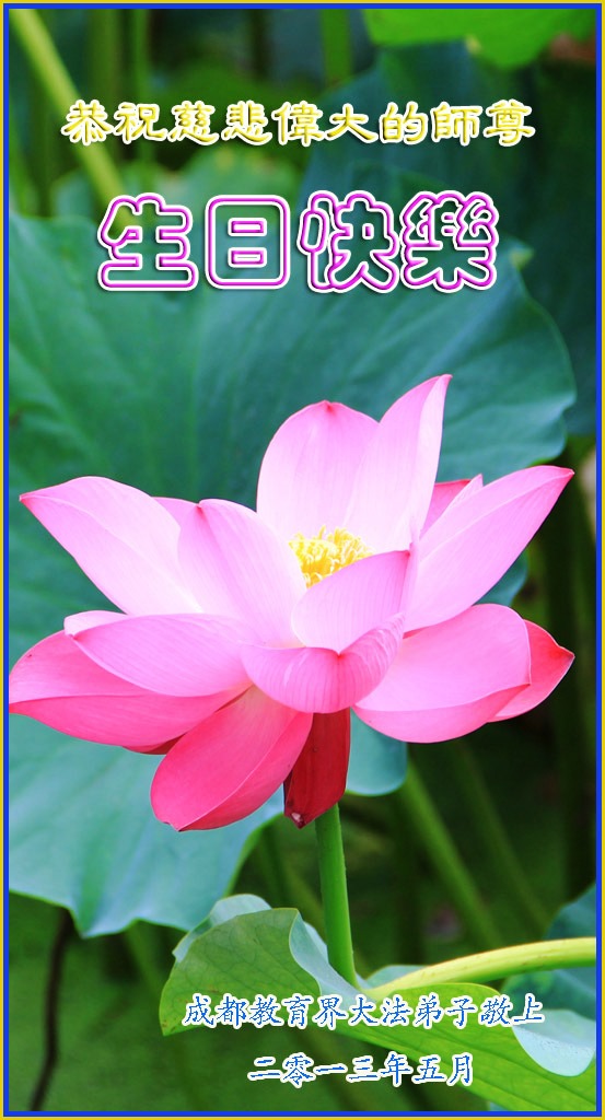 成都教育界大法弟子恭祝慈悲偉大的師尊生日快樂!