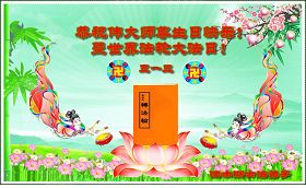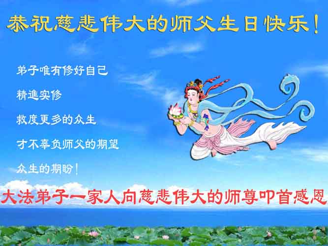 大陸大法弟子一家人向慈悲偉大的師尊叩首感恩:恭祝慈悲偉大的師父生日快樂!
