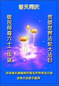 吉林省長春一大法弟子慶祝世界法輪大法日,恭祝師尊生日快樂!師尊您辛苦了!