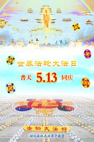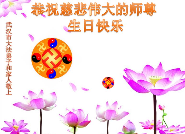 湖北省武漢大法弟子及家人(支持大法而受益者)恭祝慈悲偉大的師尊生日快樂!同慶5.13世界法輪大法日!