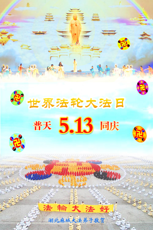湖北省黃岡市麻城市大法弟子慶祝世界法輪大法日!