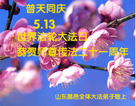 山東省濰坊市昌邑市全體大法弟子慶祝世界法輪大法日!恭賀師尊傳法二十一週年!