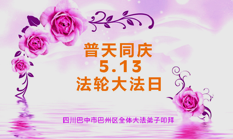 四川巴中市巴州區全體大法弟子恭祝師父生日快樂!慶祝法輪大法洪傳二十一週年!普天同慶5.13世界法輪大法日!