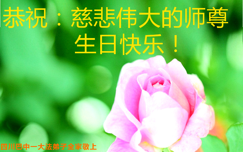 四川巴中一大法弟子全家恭祝慈悲偉大的師尊生日快樂!