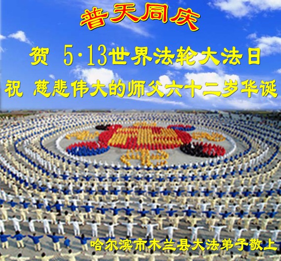 黑龍江省哈爾濱市木蘭縣大法弟子恭祝慈悲偉大的師父生日快樂!賀世界法輪大法日!