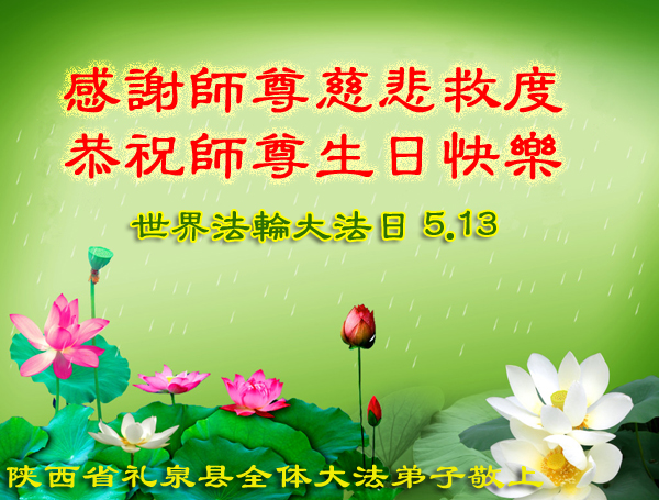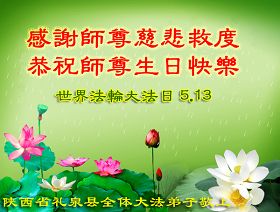 感謝師尊一路呵護,陝西省咸陽市禮泉縣全體大法弟子恭祝師尊生日快樂!