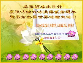 大陸小學生大法弟子恭祝師尊生日好!慶祝世界法輪大法日!