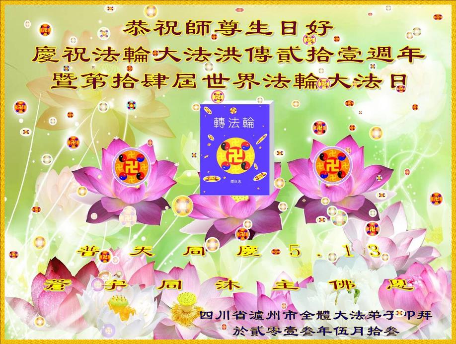 四川省瀘州市大法弟子恭祝師尊生日好,慶祝世界法輪大法日!