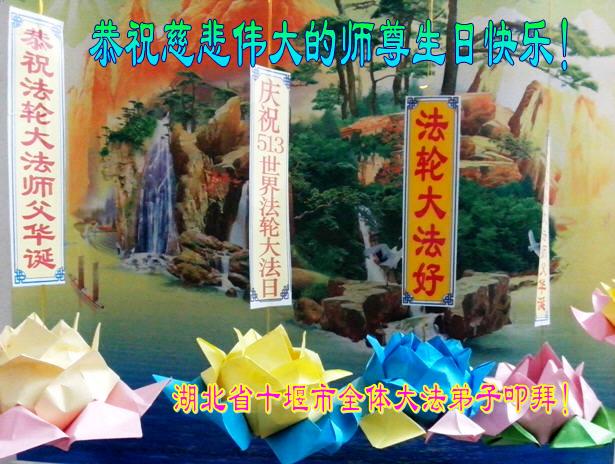 湖北省十堰市全體大法弟子恭祝慈悲偉大的師尊生日快樂,同慶5.13世界法輪大法日!