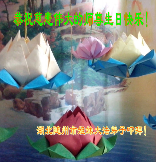 湖北省隨州市姐妹大法弟子恭祝慈悲偉大的師尊生日快樂,同慶5.13世界法輪大法日!