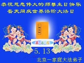 北京一大家庭全體大法弟子恭祝慈悲偉大的師尊生日快樂!