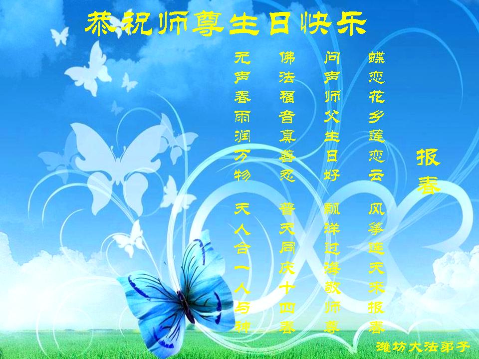 山東省濰坊大法弟子恭祝師尊生日快樂!
