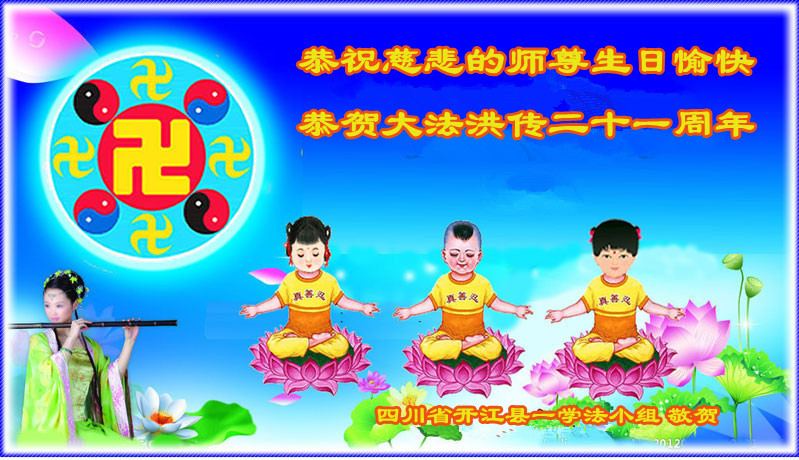 四川省達州市開江縣一學法小組恭祝慈悲的師尊生日愉快!恭賀大法洪傳二十一週年!