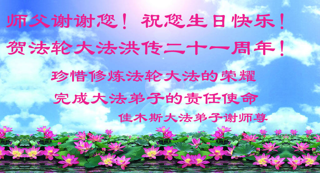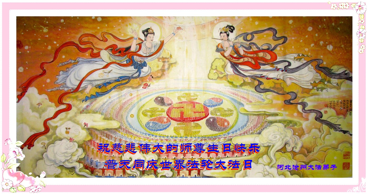 河北滄州大法弟子祝慈悲偉大的師尊生日快樂!普天同慶世界法輪大法日!
