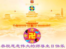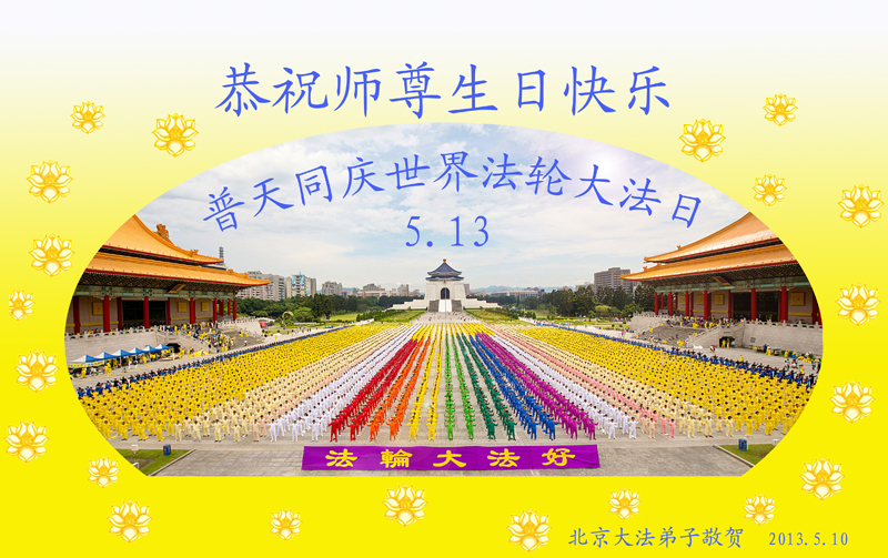 北京大法弟子恭祝慈悲偉大的師尊生日快樂!普天同慶世界法輪大法日!
