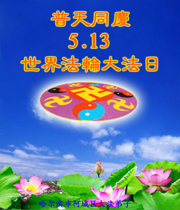 黑龍江省哈爾濱市阿城市區大法弟子恭祝慈悲偉大的師尊生日快樂!恭祝世界法輪大法日!