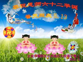 北京市朝陽區小關地區一學法小組--祝偉大的師尊生日快樂!恭祝5•13世界法輪大法日!