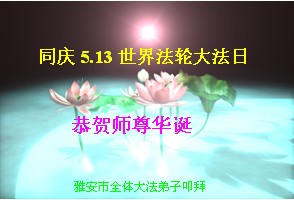 四川省雅安市全體大法弟子恭祝慈悲偉大的師尊生日快樂!慶賀法輪大法洪傳二十一週年!