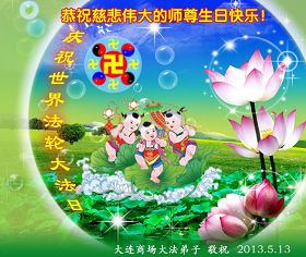 遼寧省大連商場大法弟子敬祝慈悲偉大的師尊生日快樂!