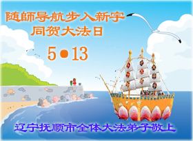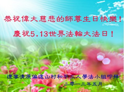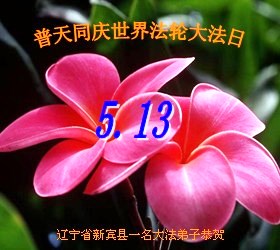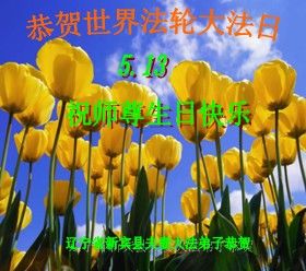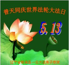 遼寧省撫順市新賓縣一大法弟子恭賀世界法輪大法日!