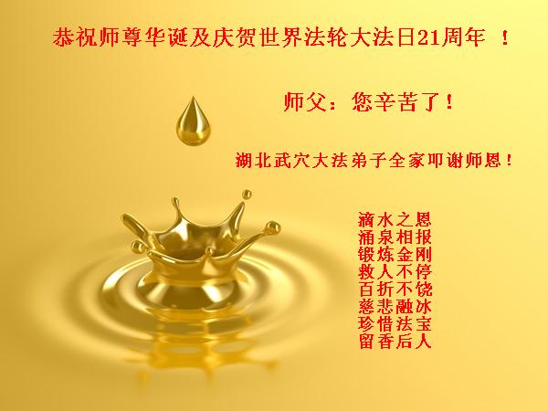 湖北省黃岡市武穴市大法弟子全家恭祝師尊華誕!慶賀世界法輪大法日!