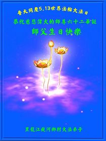黑龍江鄉村大法弟子夫婦祝賀師尊生日快樂暨5.13世界法輪大法日!