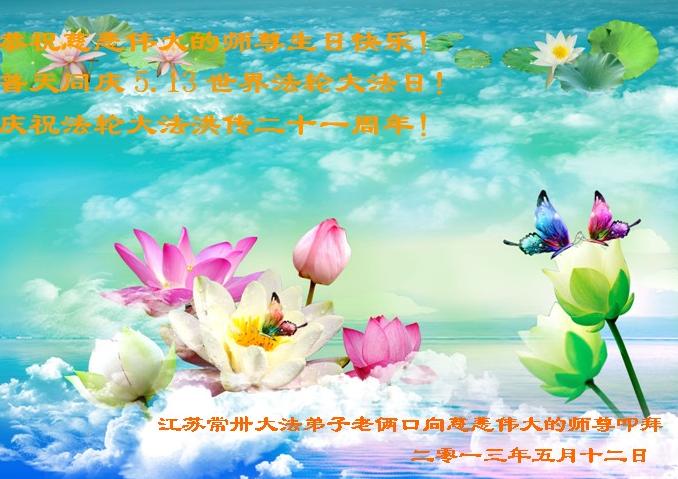 江蘇常州大法弟子老倆口恭祝師尊生日快樂!普天同慶世界法輪大法日!
