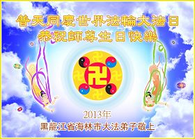 黑龍江省牡丹江市海林市全體大法弟子恭祝慈悲偉大的師尊生日快樂!同祝5.13世界法輪大法日!