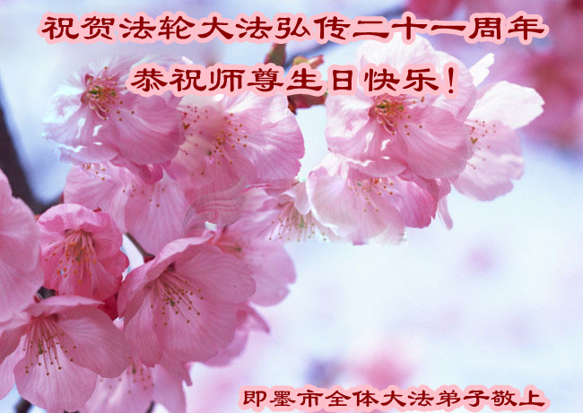 山東省青島市即墨市大法弟子恭祝師尊生日快樂暨法輪大法弘傳二十一週年 !